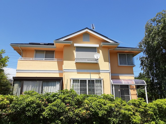 外壁はフッ素塗料、屋根は遮熱の塗料にて施工させていただきました。